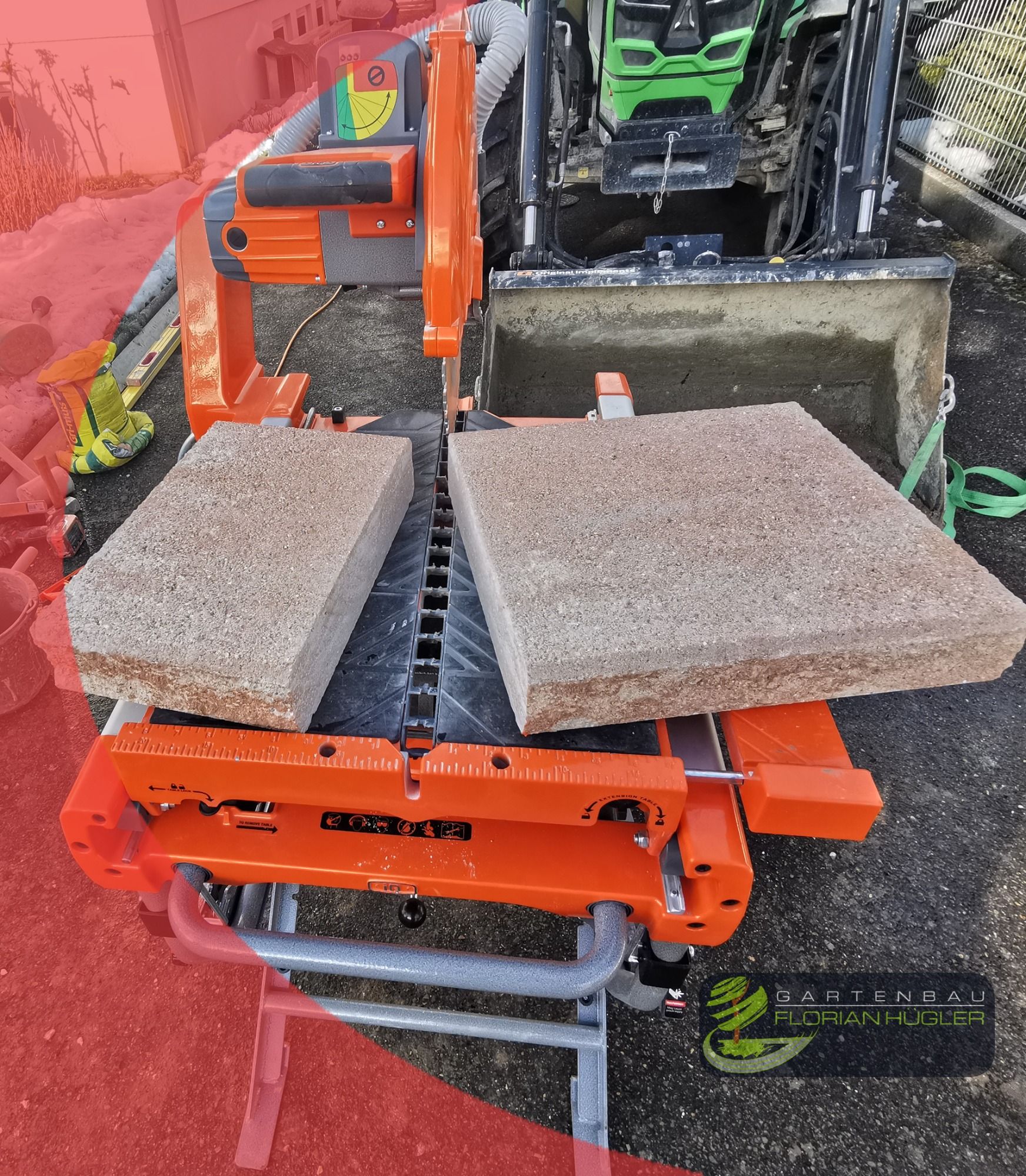 Unsere Staubarme Steinsäge für Pflaster, Platten, Natursteine und Fliesen ist jetzt im Einsatz.