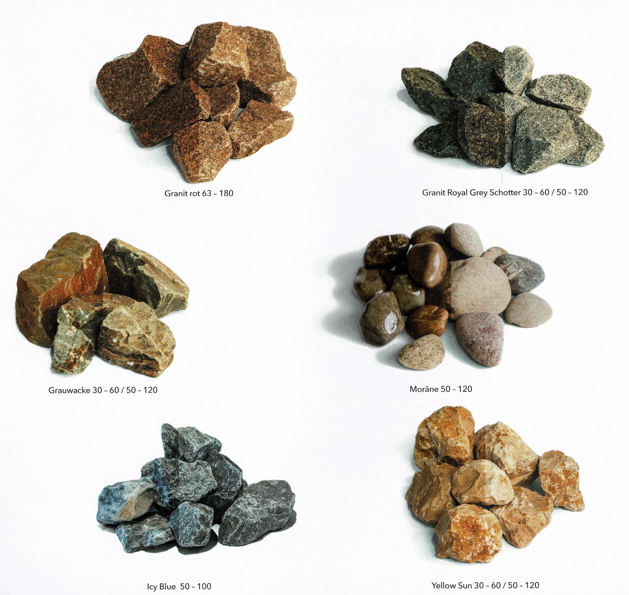 Jegliche Sorten von Zierkiesen, Splitten, Rindenmulch, gesiebter Humus, Findlingen, Natursteine-Platten, Mauersteinen und vieles mehr können wir ihnen besorgen. Auch gerne mit Lieferung zu ihnen.